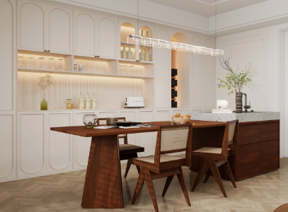 Modern dining room design is gradually shifting from the traditional ‘eating space’ to the creation of ‘life scenarios’. Light, materials, colors, furniture, and traffic flow layout work together to make the dining room both independent and naturally integrated into the entire home system. Whether it’s the simple and orderly modern style, the warm and natural wooden style, or the refined and romantic light luxury and French styles, each design has its unique charm. Choosing a style that suits oneself can turn dining into a pleasure and make the space closer to life itself.
