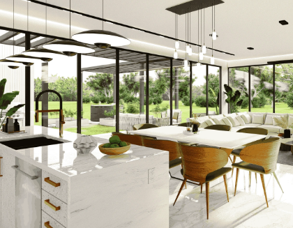 1 What are the advantages of combining an open kitchen with a dining area?